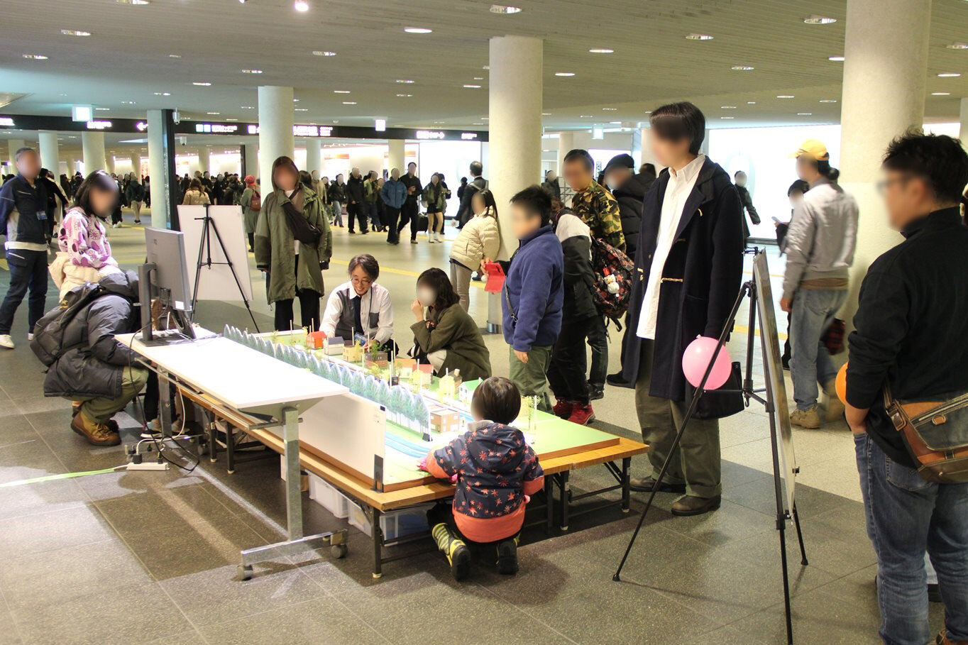 イベントでは、家族連れをはじめとして多くの方々に立ち寄っていただきました。子ども達には楽しく遊びながら街並みの変化をみてもらうことができ、親御さんや大人の方々にも、無電柱化や景観づくりについて知ってもらう良い機会となりました。ご来場いただいた方々に感謝申し上げます。